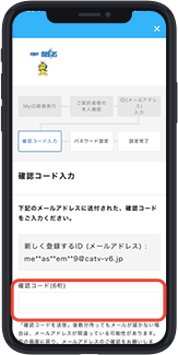登録したメールアドレスに確認コード(6桁の数字)が送信されますので、ご確認ください。