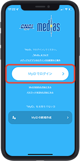 ログイン画面中央の「MyiDでログイン」ボタンをタップしてください。