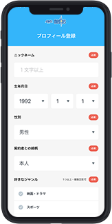 プロフィール情報を入力・選択し、最後に「登録完了」ボタンをタップしてください。