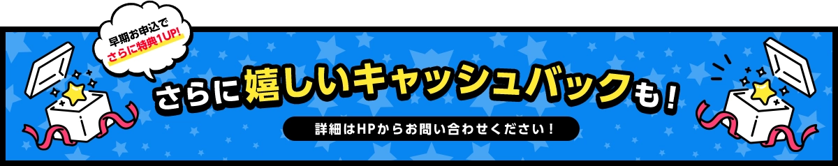 - 他社解約解約費用の全額補填について、適用にあたり違約金明細が記載された書類のご提出を適用条件としております。